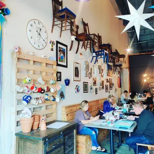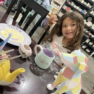 Our family has been painting pottery for 15+ years and this was the first time we've been to a place where they rationed out their paint and limited us by number of colors. Usually we are able to select the item we wish to paint, find a seat, then choose how ever many colors we want and set to work on our project. Here, we choose our item then had to ask the person to provide us with a squirt of a select limited colors to take to our table to paint. If we needed additional paint they would provide it, but it felt very controlled and micromanaged. It really set our creativity off when working on our projects and then folks kept coming by checking on what we were doing - making suggestions ... which was ANNOYING. If I have a question, I will ask, but please don't provide unsolicited suggestions and try and sway my and my children's creative thoughts/ideas. My children are use to working on painted pottery on turn tables, using tape, using stencils, using sponges, and all kinds of artistic aids which were not provided or offered here without asking. It felt like the owner was trying to save a buck so they decided to ration out the amount of paint and harass the customers so they would finish and leave so they can turn tables. Not a place I would return to. Too experience too boot compared to the other places we've been.