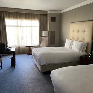 I took my wife here for her birthday since she had never stayed at a Ritz-Carlton before (to be honest, either had I). Although the hotel is in some ways showing its age, the service was impeccable from start to finish and we really enjoyed our stay. They really make you feel welcome and try to take care of you. We had a standard room ( think they call it deluxe but it's just a regular room) with 2 queens. To be honest, the room was not an "OMG" moment when you walk in, but it was clean and comfortable. The bathroom was very large. The beds were very comfortable. We faced greenery so the room was quiet. I liked the room and thought it was perfectly fine. The location is great although you have to do valet parking which is $55 per night because you'll never find parking in that area of town. We used the heated pool twice which was great; there is also a gym and a spa. I would definitely stay here again for a special occasion.