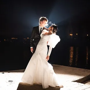 a bride and groom having their first dance