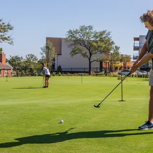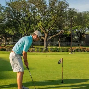 Would've given 5 stars for the putting and overall vibe of the area, as well as the very nice front desk workers where you get the putters and balls. However, the bartender was a different story. My fiancé and I went around 3:45pm yesterday (Sunday afternoon). He immediately seemed as if I was a bother to him, although the bar was dead, the club just opened, and he was not busy whatsoever. He just stared at me until I told him what drink I wanted. No sort of greeting or smile. I ordered a frozen pina colada. The man seemed disgruntled that's what I preferred. He goes to the pina colada machine and the mix was a little too frozen, so he was trying to get out an adequate amount for my drink. I told him nicely, "I'm sorry, if it's too much trouble I can order something else" and he responds rather rudely "at this point it would be more trouble for me to stop." Once he hands me my drink, I said I really appreciate it, and he responds with "it's too cold outside for a frozen drink anyway." and then walks away. Mind you I just had a workout outside, so I was sweating, and it was 75 degrees outside... This really upset me and honestly ruined the rest of my experience, so my fiancé went to the front desk when we returned our putters to tell them about the horrible attitude of the bartender. I live at this complex, therefore I use a lot of the facilities The Village has to offer. However, if your goal is to get outsiders to use the facilities and maybe decide to move in -- I'd suggest getting some nicer staff.