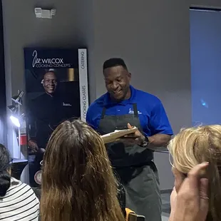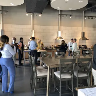 What a great experience!I came here with a group of 19 colleagues for a team building event. Our group was split into two teams at five and two teams are four. Two stayed out to be judges. Each group was provided a mystery box of chicken thighs, and mahi-mahi for protein. We also had broccoli, orange, marmalade, rosemary, and black beans.We all had fun, laughing along with Tre. He is hilarious!The meal he and the other chefs prepared for us, was also delicious. Free-flowing, fun and laughter! Would definitely recommend this venue for other team building events.