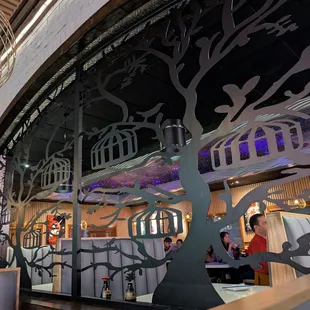 Restaurant interior is beautiful, spacious, and unique. If it felt otherworldly during the day time, I wonder how the cool vibes would be during a later dinner/night time. It was very calm and pleasant. We arrived around 11 and left at around 12:30 but it never got really busy. Our server, Fred, was so helpful and sweet. We were unfamiliar with the options like all you can eat (AYCE) but he was very helpful in providing a thorough explanation and walking through prices. AYCE has a diffeeent menu than regular and food comes out in smaller portions to share and have room to try all the options. Food overall took an average time to come out but some took a lot longer than others, but since the restaurant isn't really bustling or overstimulating, I was able to converse with my daughters, who I went with. It was nice to be able to not only enjoy the food aspect of the restaurant but also be able to connect and spend time with my daughters without having to yell. Fred repeatedly checked up on us and when food was taking long, he was updating us on the process of making it, which shows that they make the food fresh. Overall, great service.Food:a lot of the food on the menu has unique fruity sauces-Truffle Salmon: didn't taste much truffle and it came with an orange sauce... like the FRUIT orange! initially, it took me aback but I oddly liked it! orange flavor is very sweet and strong but then it fades away and you taste the tobiko and salmon and the combination is very interesting-Tempura Banana dessert: we ordered this because it seemed so unique, and it took a while to come out but it was good! Came warm but the bananas they use are more on the less ripe side so it doesn't get mushy when cooking. - sushi: all the sushi was pretty good and flavorful but not warm.honorable mentions:1. Paradise Roll: delicious! came with a mango sauce that paired well with the other flavors in the sushi2. Beautiful Life Roll: I loved the savory flavor from the sauces, tobiko, and crawfish. Overall, the restaurant isn't perfect, but made our experience a 5 star. Thoroughly enjoyed it!