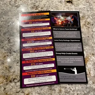 What a fun place for a date! Extremely friendly staff; very inviting! We came here for the Valentine's Day "flaming hot date night" and it was awesome! Drinks, dessert, and art! It was so much fun to learn about the art of glass blowing and also be able to make your own art. I can't wait to come back to pick up my custom piece and I'll definitely be back for more fun!