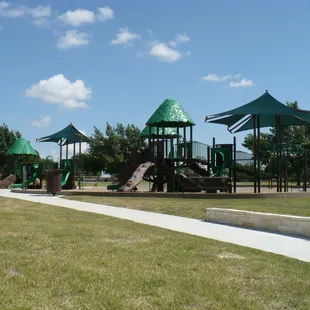 The literal only fault this park has is that it doesn't have a bathroom which is difficult because I have a three year old and a four year old at my three year old is on the tail end of potty training... Other than that, I absolutely loved this park. The structures on the playground were great, the other parents, who came with their children were friendly, it was perfect for a little picnic that we decided to have and there's even a trail that goes circles, the perimeter of the park which is paved. Not much more to add, definitely enjoyed the apparatuses and atmosphere.