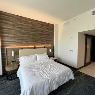 I stayed here this past Friday night for a belated holiday party. I got checked in easily and everyone was so nice!The room was very clean (didn't get pictures before unpacking and settling in) and I LOVED how spacious the bathroom counter was! Lighting was great also. I would highly recommend this hotel - it's super swanky!