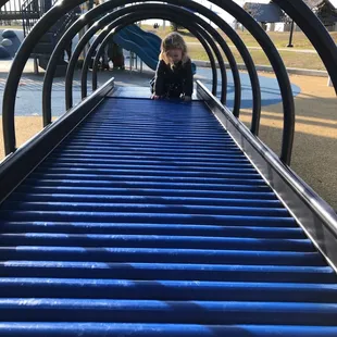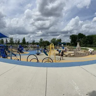 There are multiple areas of this park - water features (closed during the colder months), young kids area, and larger open space for big kids. Even though this is large, there are many areas where parents can stand and view most of the playground.