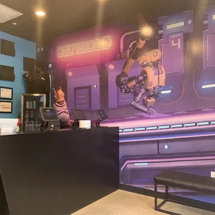 I will update after I play the game, I thought this was gone be a large venue like a Main Event type space but it is not. Small waiting area to wait to play and you can hear them giving instructions in the room next door.