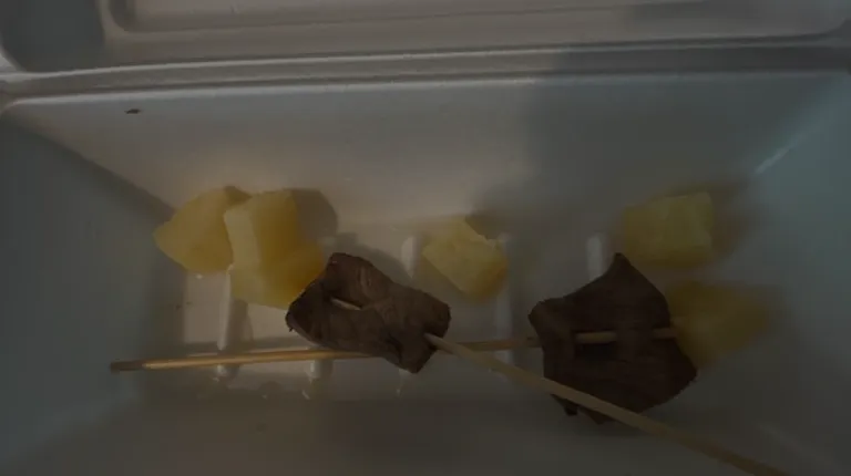 Onion, pepper, and potatoes are not well cut in the curry. You can see the center eye of the onion and tail of the pepper.