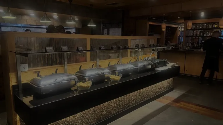 The restaurant maintains its original mid-90s aesthetic, complete with a dessert cart, which, in the context of minimal service, feels outdated and unnecessary. During our visit, it was evident that the dining room was severely understaffed. We observed only one server, two "carvers," and a bartender attempting to manage the entire space. As a result, we had to retrieve our drinks from the bar, as the server appeared overwhelmed. When I mentioned the staffing issue to the bartender, I received a dismissive response about the impact on the tip pool, which was off-putting given the self-service nature of obtaining drinks.The lack of clear leadership on the floor, such as a manager or MOD, was apparent. Despite these challenges, the food had its highlights. The Chimichurri, served at the salad bar, was well-balanced and flavorful, and most of the meats were delicious, especially the lamb. However, some dishes were overly salty, and the salad bar, aside from prepackaged salads, was underwhelming. The attempt at "pan con tomate" fell short, resembling stale croutons with dried sundried tomatoes. Additionally, the plastic version of a Parmesan wheel, with dried-out Parmesan flakes dumped on top of it, was unpleasant.Service issues extended beyond staffing, as no one informed us that side dishes were self-served at the bar. While the mashed potatoes were exceptional, the overall lack of guidance on ordering was disappointing. Additionally, the dessert was not recommended, and the need to manage our drinks, request the check, and pay at the bar diminished the overall experience.Despite the decent food quality, the underwhelming salad bar, coupled with the subpar service, makes it an experience I would not wish to repeat.