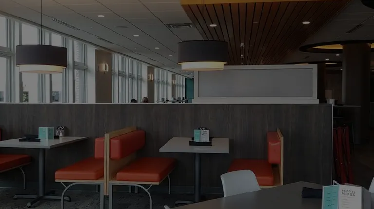 tables and chairs in a restaurant