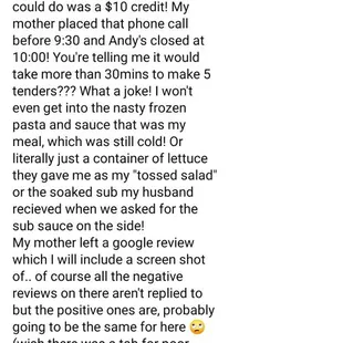 Andy's was always one of our favorite places to order from until recently. A few months ago I had a staple in my pizza that I luckily caught before my toddler ate it and when I called to let them know the immature worker who answered the phone said "you want free food or something" I said "no, I just wanted to make you aware so it didn't happen to anyone else, accidents happen" tonight I received an order through DoorDash with a pizza that was so burnt I can't believe they felt comfortable boxing it up and sending it off then they told us we had to contact DoorDash. We have to contact them for some YOU made?! I gave them the benefit of the doubt because like I said; we loveD them and things happen, but never again.