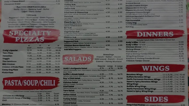 Some of the best pizza and wings in the downriver area!!!!Never had a bad meal from Andy's. Been ordering since the late 90's