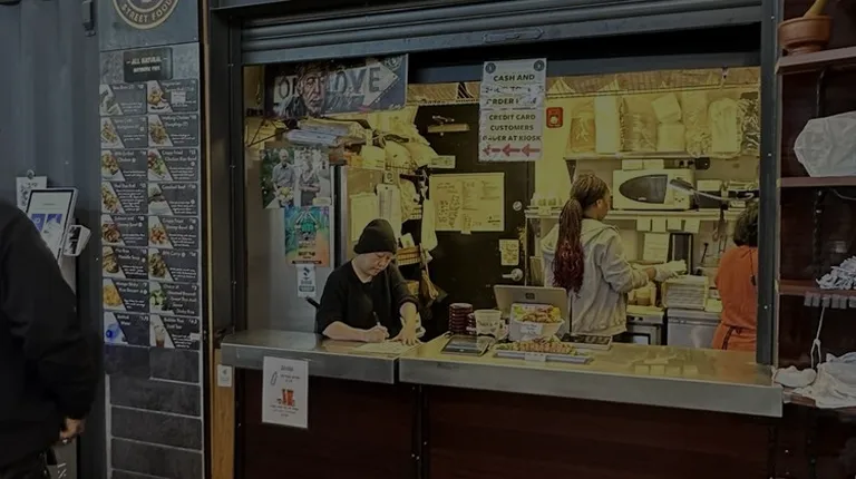 We stopped here before going to a show at The Masonic around 5:30 on a Saturday, very hectic inside Detroit Shipping Co. They have 2 kiosks to order from or you can go to the counter if you have cash or tokens. The kiosk lines were long and I had cash, so I ordered there. I waited at least 30min for the food. I ordered the pad Thai roll, spring rolls and walking crispy dumplings on sticks. The pad Thai Roll was ok, the noodles and chicken inside seemed unseasoned, all of the flavor was in the sauces and toppings on the outside of the wrap. I mean, just plain noodles and plain chicken inside??? I frequent the orig Bangkok 96 for Pad Thai, so this was a let down. We enjoyed the crispy dumplings, a good portion and very shareable, I'm just noticing the receipt says "no spice" but I was never asked if I wanted spice and I would've likes some spice.. The spring rolls weren't anything special.