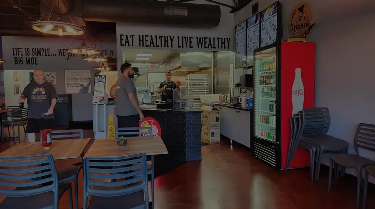Cool concept!Big Moe's Kitchen has a cool vibe and yummy comfort foods.The staff seemed hard-working and looked like master chef's back there preparing orders. Open kitchen concepts are super inviting as they allow you more insight into who is preparing your food.This restaurant is located in a tiny strip of crowded stores. The parking lot seemed to handle the constant traffic flow well.Inside, there is plenty of seating. There were a few families dining in, but plenty also carried out.I ordered a shrimp rice bowl to go. It comes with jalapenos, which I asked to be nixed. They were there anyway. It was a little difficult to pick them out being dosed in sauce. They mixed in with everything else.There was a good amount of shrimp in the bowl, which made me happy. This bowl is $19, and I'd have to say that it's worth it. Other bowls vary in cost according to the main protein. The shrimp were coated in a Thai sauce, according to the menu. They were fresh, cooked well and delicious. Other bowl ingredients included peppers, onion, mushroom, corn, lettuce, and tomato. The entire concoction was slathered with bambam sauce and house ranch. I swear that if I read the entire list of ingredients, I would have passed on ordering it. However, I am happy that I did. It was so so good!Also on the menu are chicken, brisket, and steak bowls, among a few other proteins. Big Moe's crafts subs, sandwiches, loaded fries, wraps, salads, and a few other popular options, such as chicken wings.Service was good and fast.I'll be back to try more of these interesting creations. There's an avocado mayo on the menu that's calling out to me. Love some avo!