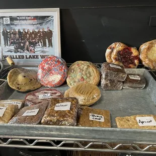 Small size off the road, not what I was expecting for the building. Private parking lot. There really is no easy way to get to this place, it's in a very obscure part of commerce. All surface roads and only slow roads to get hereFront area is a store and gift shop. Walk through and turn left to go to the bagel shop. Usually would expect the waft of baked bagel dough, instead I smell coffee and cigarettes or something else that I wasn't expecting, it's quite strong. Couldn't even smell the freshly baked bagels at all over the other scents. Grabbed two of the blueberry lemon, two slices of chocolate banana, two slices of the banana, everything bagel with egg, cheese and bacon with plain cream cheese, plain bagel with plain cream cheese, Thomas Edison on everything bagel with onions, pickles, cheddar jalapeño cream cheese and a Thomas Edison on multigrain bagel with pepper jack cheese, lettuce, tomato, red onion, pickles with jalapeño cream cheese. $45.50The Thomas Edison bagel was okay, the bagels are all really hard. Too hard for me to chew on and wouldn't give as you bite into the sandwich. The other Thomas Edison was the same, hard bagel. The plain bagel and cream cheese was so-so. The blueberry and lemon as well as the chocolate banana bread were both good, the banana bread didn't have as much flavor and wasn't as buttery as I had hoped. Butter or cream cheese would have made the breads slices even better.