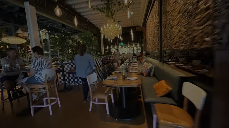 Walked up the the hostess stand. It didn't look too busy. Only a few tables filled outside and inside too. It looks cool inside, a big beautiful chandelier in the center. Thai engraved wood carvings on the one wall, reminds me of the many market artisan crafts in Thailand. There are lots of live plants everywhere too, even at the bar. We were seated quickly with menus. Not one person has come to our table for over 6 minutes. No water, no service, not even a staffer asking if anyone has waited on us yet. No inquiries whatsoever. Being seated is only the first part of decent service. Thinking we should have sat at the bar. The irksome part was I saw other tables with staff serving the other tables inside and outside too. We finally left after 10 minutes of waiting, no one was ever going to come to our table anytime soon.
