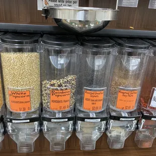 Absolutely love this place! They have a great selection of spices, different kinds of flours, grains, loose tea and nuts...and candy, too! Great for making your own trail mix and granola bars! There is a little basket (near the tea) so you can measure out exactly what you need for a recipe! It's a bit out of my way, but I definitely have no problem making the 30 minute drive there!The only way they could improve would be to maybe have a couple more scales hanging around!
