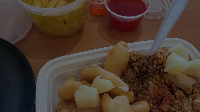 the chicken was just soggy, and bland rice. I saw good reviews maybe bc I placed my order near closing?
