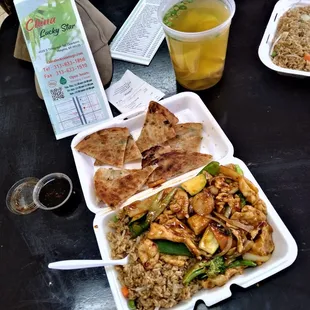 So happy to find another Chinese place with dining room open, room for a dozen plus hungry folks. Food is still take out containers, the waitress Angel brought to us. Lowest Prices anywhere, all lunch specials $7.95 . And most dinner's only $10.95 with mega portions. I was here once 6 years ago when first opened, the food is spot on wonderful . I had a fantastic mixed Chicken n Veggie dish with Rice and Egg Roll. She had the dinner portion Chicken Egg Foo Young with Rice Egg Roll and Brown Gravy . Add a quart of Wonton Soup only $5 for the win. Going back really soon, Thanks Angel does it all, Cooking and Waitress great job. #chinaluckystar @chineseluckystar #lowprices #chickeneggfooyoung #wontonsoup #eggrolls #shachachicken #diningroomopen #downriverfriendseat