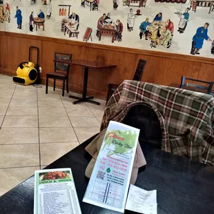 Dining Room Open room for a dozen plus, clean restroom. Every thing served as take out only.