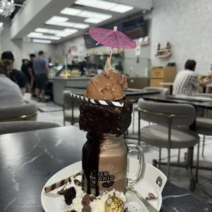 Besides sugar I don't really taste much else. Godly expensive for this little piece. $17, just wow, this is mad, this world has gone wild. I am lost for words. I would understand if it was made freshly made in front of me, and used some specialty chocolate. The service was slow. Nicely decorated. They are crazy busy and I really don't understand why. And I have had multiple items, everything is overrated and super expensive.