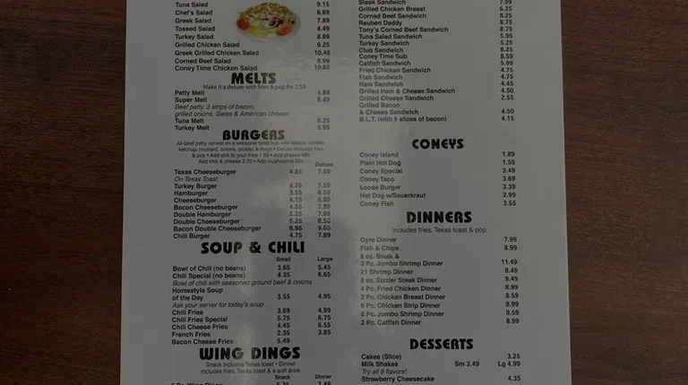 Menu from Coney Time.