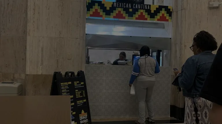 Got lunch from here today. Went with the Guardian Twin tacos i.e. two chicken or beef tacos, soft or crunchy, with lettuce, tomato, and cheese on them. Served with a side of rice and a side of beans plus a small bag of chips and a very small container of salsa.The good - super fast. Priced very inexpensively for downtown Detroit i.e. $7.99 for all that. Chips were crunchy and salsa was good (might have been Garden Fresh brand).Tacos tasted very "American". Chicken didn't have a lot of flavor. Was very moist though. So moist that I had a lot of fluid in the bottom of my to go box which made the flour tacos soggy. Rice had a little kick to it and was al dente. I would describe the color of the rice as orange. Not my thing, but personal preference, others might like.There is much better Mexican food than this around town, but if you need a quick, not too expensive lunch downtown, maybe go here. Bonus - you can enjoy the Guardian ceiling/walls while you eat.