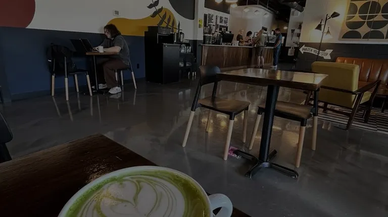 The drinks are a bit expensive here but I'd say they are worth it. I've had the chai tea, kerouac and vanilla lattes. They were all very tasty. The Kerouac is essentially an earl gray tea latte with lavender and cinnamon, I got it with whole milk and it is earthy and a little sweet. I've never had something like that before but it's my favorite drink here. The coffee itself was very good and the vanilla latte I got was the perfect amount of sweetness/creaminess. They are also very aesthetically pleasing with designs on the top of your drink. There is a lot of space for people to work/hang out and it is a very cute spot. They have an assortment of pastries, I've only had a chocolate croissant and it was flaky and warm- very yummy. There seems to be adequate parking in front and on the side streets for free.