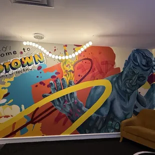 Located in the basement of the Cambria Hotel downtown in Detroit along with Five Iron Golf. Great venue for a small group. Venue was busy but bar was properly staffed and service was great. There was a food menu but I didn't eat while I was there. The groups around had food and it looked like standard bar food/appetizers.