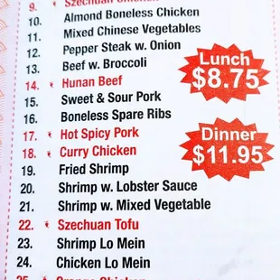 a menu for chow mein or chop suey