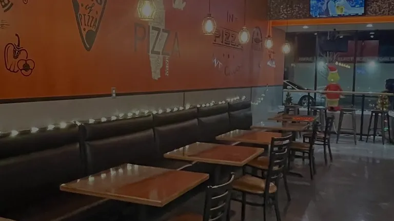 Fast food service. Average pizza. Mostly takeout than dine-in. Support local community. Quiet street