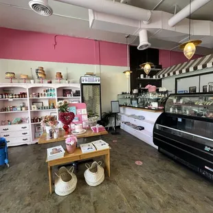 This is the cutest bakery around and it's located right in the neighborhood and that is a big plus!!! The decor is beautiful and inviting my kids and I just enjoyed the ambiance. The service was ok, I'm a person that will ask what do you like or I'll have my eye on an item or to and will ask for a recommendation better the items. The person who helped me hadn't tried a couple of things I was eying. We had a wide range of things: chocolate chip cookie, sugar cookie, lemon blueberry loaf, pineapple upside down cake and peach cobbler. My favorite was the peach cobbler I would recommend their peach cobbler to any and everyone it's so good. My kids loved the cookies they are big and not too sweet. We weren't fans of the lemon blueberry or pineapple upside down cake they really didn't offer any flavor, they were not nasty but it was rather tasteless. All in all the cookies and peach cobbler are amazing. I'll go back and try the cupcakes.