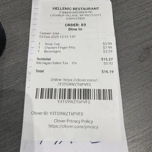 No senior discountFood was Allright. Wanted more tomatoes and beets for the skimpy mini Greek salad. They charged $1.50 EACH for extra.I've had many better gyro & greek at any corner coney island.