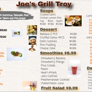 Ordered delivery today. Ordered the chicken kebab dinner. Comes with 2 kebabs, rice, hummus, tabbouli and choice of soup or salad. I got crushed lentil. Chicken was tender and the kebabs had large pieces of meat on them. All the sides were very tasty. I will definitely order again.