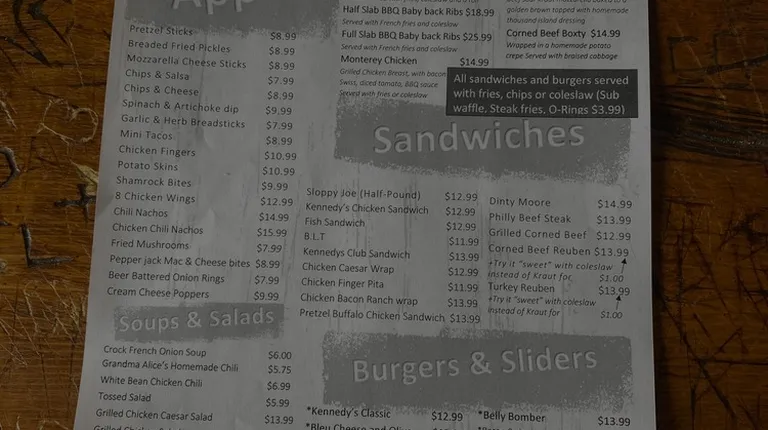 I have not been to Kennedy's until my friend told me to try it out. She didn't disappoint in this recommendation. The food is amazing and I'm slowly becoming a regular as I start trying new food items. My friend is already a regular and I can see why. The staff is super fun and friendly. Very down to earth. The atmosphere is welcoming and reminds me of a bar that is close like Cheers. Especially with how they talk to the regulars and treat other guests. I highly recommend this bar.
