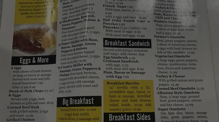We had breakfast here, sat in. Asked for a coke and a water. Never got the coke, was still billed for it. When we pointed it out, the cashier checked our table to make sure we were being honest.Our food sat in the "ready window" for a solid 3 mins before it was ran, when the waitress approached it to bring to the table, she was just finish eating with her fingers before grabbing the plate.Lastly, we both had stomach issues after the meal.It is our first bad experience there out of two times trying the place. Its a little on the high side but you do get a really good sized portion, so it is worth it.I vote "maybe" on this because you may have a great experience, just so happened that my last experience was not pleasant on four accounts so I will likely pass next time we "vote" on where to eat.