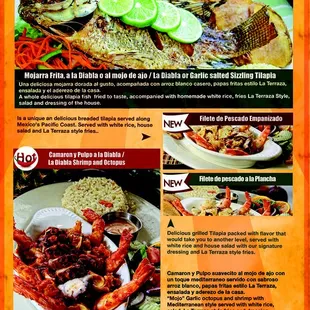 PULPO ENOJADO The angry octopus monthly special dish Cooked with our homemade spicy hot sauce served with white rice, grill vegetables