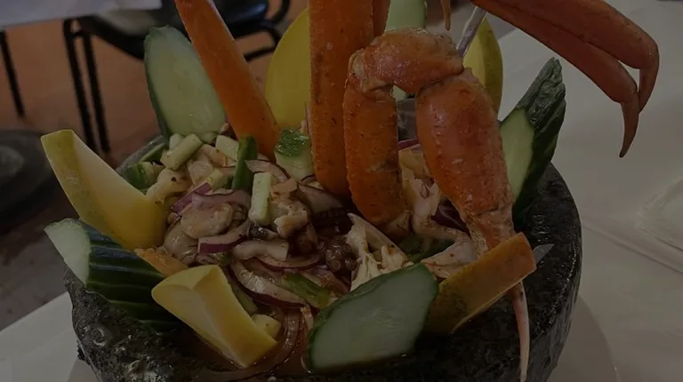 Great food beautiful girls and good music the giant stone bowl filled with ceviche then topped with a cluster of crab legs is my favorite