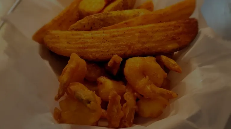 a basket of fried fish and fries