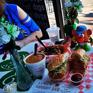 18 Layer of Meats, 3 Layers of Cheese Italian Submarine Sandwich-Capicola, Ham, Salami, Provolone Cheese, Lettuce, Onions, Tomato served on a 8 inch soft bun with Italian Sauce sounds familiar you say. Yes another close to home fantastic Itailan Sub right up there with Gonellas and Alcamo's two decades old favorites. Open in 2021 has gained a large following of regular customers, you can count me in. Famous for multiplayer sandwiches, Soups n sides I'll be returning for really soon. Filled me belly with Love could only eat half, this big sub plenty to share a must try. Follow the Facebook page for Soup of the day, also find on Yelp Google n Instagram