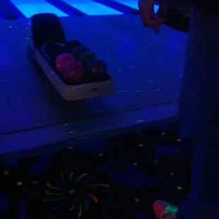 Came here for a date night with my boyfriend. It was a very small and intimate bowling alley. We just got there right when the league ended and as we were waiting we got a drink at the bar. Played 3 games and really enjoyed it when the lights went out and we started glowing.