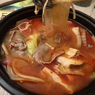 Love the concept where you get to choose what and how much of certain ingredients you want to put in your personal bowl. My bowl was under $12 and I even had enough to bring home leftovers. The options for what to put in is not as vast as other places but they do have a good amount and variety. Cook time was quick and the broth was nothing like I've had before but it was tasty. Workers are nice and checked up on us. Will definitely go again and will have to try the Korean fried chicken & rice cakes.