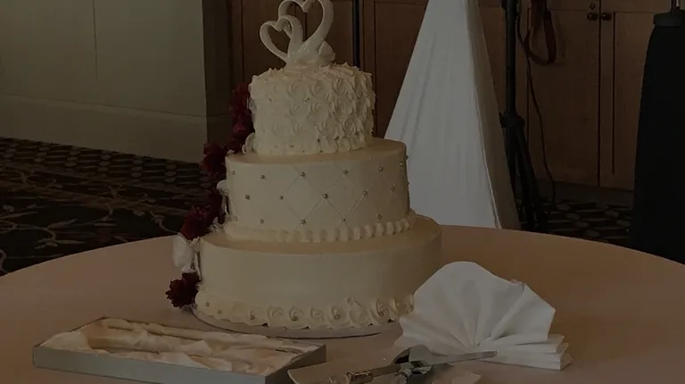 Had a cake from here today and it was good.I had a few decadent bites of the red velvet, white or yellow cake and the chocolate sheet cake.The wedding cake was for videos and pictures too. If you get a wedding cake from here, they will give you a free wedding topper for your 1 year anniversary, nice. The red velvet crumbled and was quite dry and not so good. No one at our table liked their red velvet, it was a fail. The chocolate cake was the better bites of the 3. The top of the first layer was a pudding. It was moist and tasty. The white cake was also good, not dry at all.