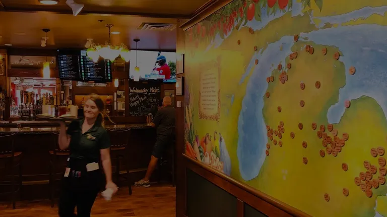 Awesomeness and wonderful bar restaurant with no wait, fully staffed and fun Trivia night activities unlike the Famous Bavarian Inn Restaurant, which sits inside with only German Foods. This fun little bar restaurant faces the busy Main Street in this beautiful, famously decorated downtown with German heritage! It's gorgeous just to sit here and enjoy their fine dining experience as well as the spirited staffs running around the thirty some tables with mixed American Hamburgers and German Bratwurst Sausage Dishes and German beer in 14 oz. dainty glasses. What a wonderful find. Nothing touristy about this Jewel of Frankenmuth, MI.