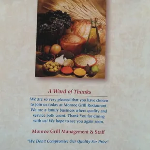the menu of the restaurant
