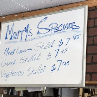 When Yelpers describe Monty's as small, you should believe them! I counted nine counter seats and five high-tops for two. We had been planning lunch here for a couple of months and, finally, because most of our lunch group was out of town or had conflicts, we were small enough to fit.As usual, we faithfully studied the photos and reviews to narrow our choices. They're open from 7 am to 3 pm. Not surprisingly, most of the photos are of breakfast choices but they do have a variety of lunch items as well.I was determined to try a Burger or other Sandwich in order to add more lunch photos. But then I saw the specials boards and they had an Irish Omelet! Never had one before so had to have one - NOW. My wife was impressed with the Veggie Skillet photos and stayed with that choice.While waiting for our friends, we ordered Coffee and split a homemade Bowl of Split Pea Soup (see what I did there?), fresh and delicious. The Veggie Skillet was three eggs, cooked to your liking, on lots of Veggies and Potatoes! It came with Toast and she chose Cinnamon Raisin Toast for an extra $0.75; it was voluminous enough that we took some home to finish later. The Irish Omelet had Corned Beef, Green Peppers, Onions, and Swiss Cheese in it and came with choices for sides. I chose Fried Potatoes and Wheat Toast. Mine was a great choice and appropriate for the season; nothing artificially green, and the Potatoes had the right amount of crisp for my taste. My wife thought, however, that the Swiss Cheese should have been Dubliner (Irish Cheddar) instead because, after all, it was called an Irish Omelet. My wife from Japan is more Irish than me! The owner/operators, Bardha and John, are great people, fun to talk with, and will keep the coffee coming. Hand Sanitizer was available on the counter as well, in tune with the current Coronavirus scare. They maintain a friendly and inviting atmosphere, which naturally makes you want to come back.