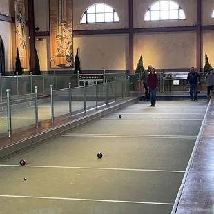 Came here for a work lunch outing and had a fabulous time! Started with lunch and ordered the meatball sub and started with the calamari appetizer and a cup of cream of mushroom soup. The calamari was perfectly breaded and fried, and the cream of mushroom soup was delicious. The meatball sub was also delicious and very filling! We followed lunch with bocce and our server showed us how to play. You get 80 minutes of court time and it was more fun then I thought it would be. We had a great work function and all enjoyed ourselves! We will be back!