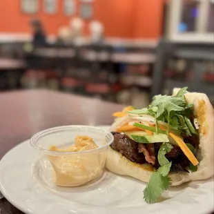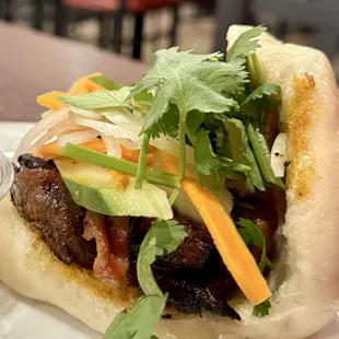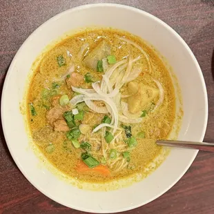 Delicious bao bun and rice noodle chicken curry. The bun is small. The chicken curry dish was huge. Glad I was sharing both. The flavors of the curry dish are incredible. My only critique is that I wish there were slightly fewer noodles and a bunch more veggies. Maybe next time I'll see if they will adjust that way. Regardless it's tasty. And the service was friendly. The decor is pretty simple. But it doesn't really need to be fancy. Overall very enjoyable.