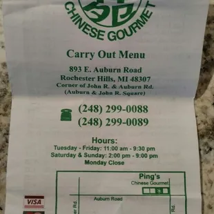 a menu for a chinese restaurant