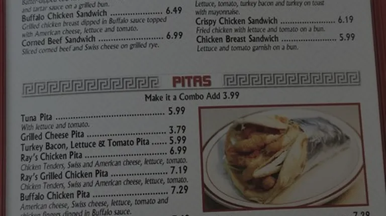 $9.75American cheese, lettuce, tomatoes, pickles, onions, Ray's sauce, mayo, ketchup, and mustard.
